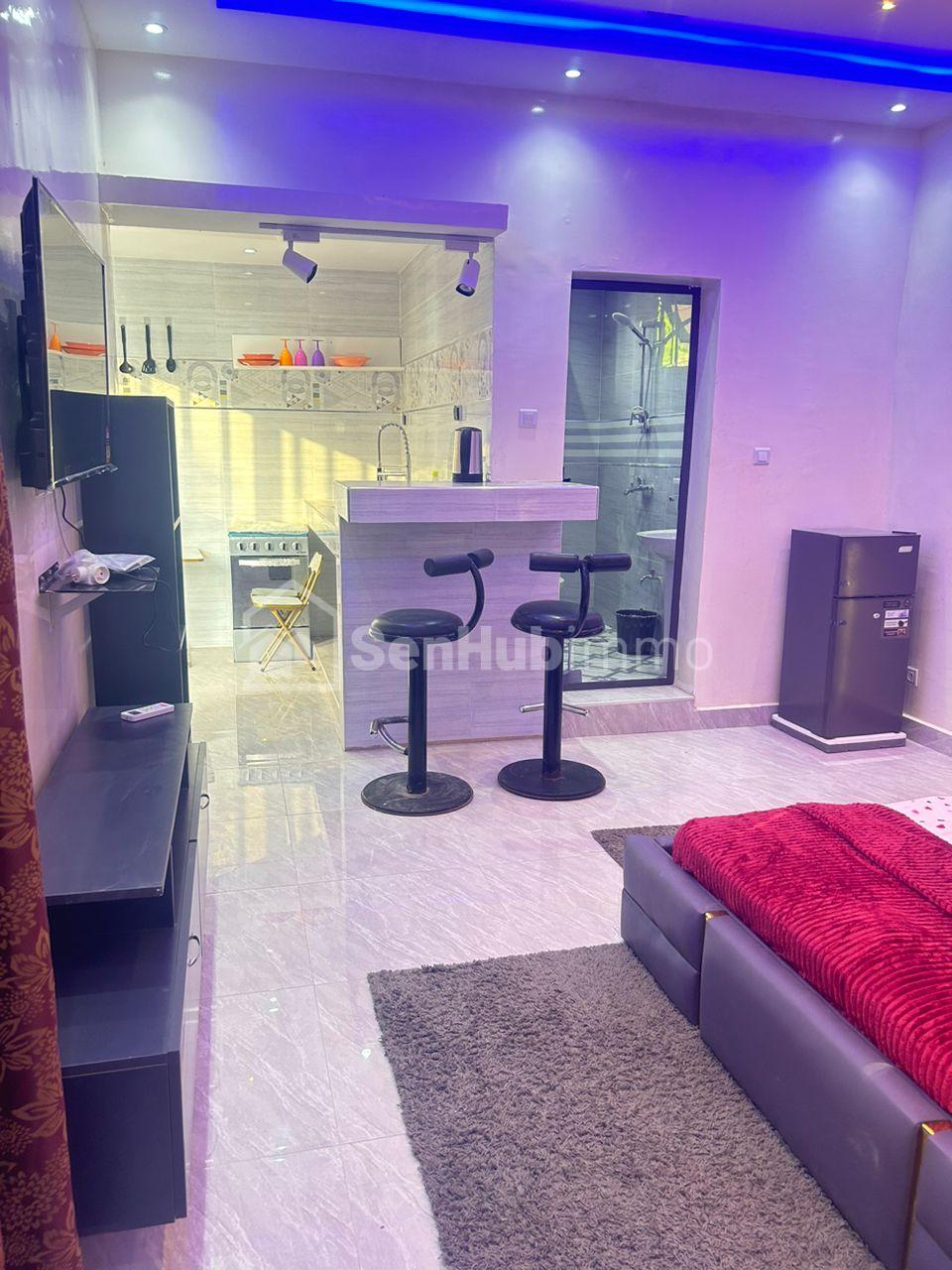 Mini studio américain disponible à point E avec toutes les commodités prix 35000 la journée Pour plus d'informations veuillez nous contacter