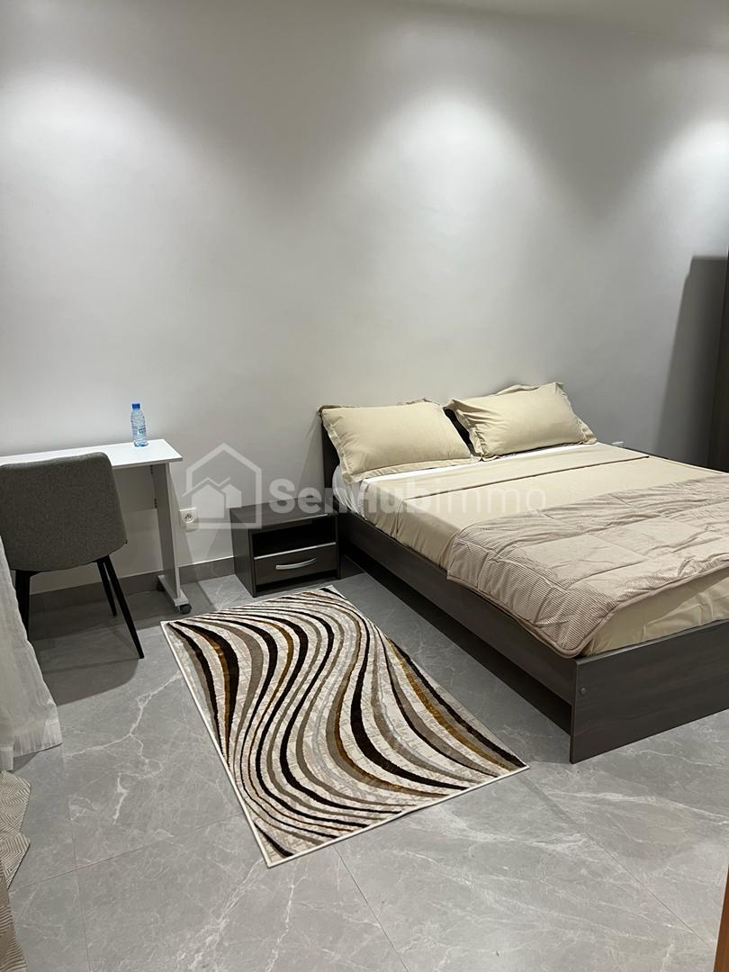 2 chambres chacune avec leur salle d'eau 1 salon, salle à manger avec balcon 1 cuisine équipée 1 patio aménagé