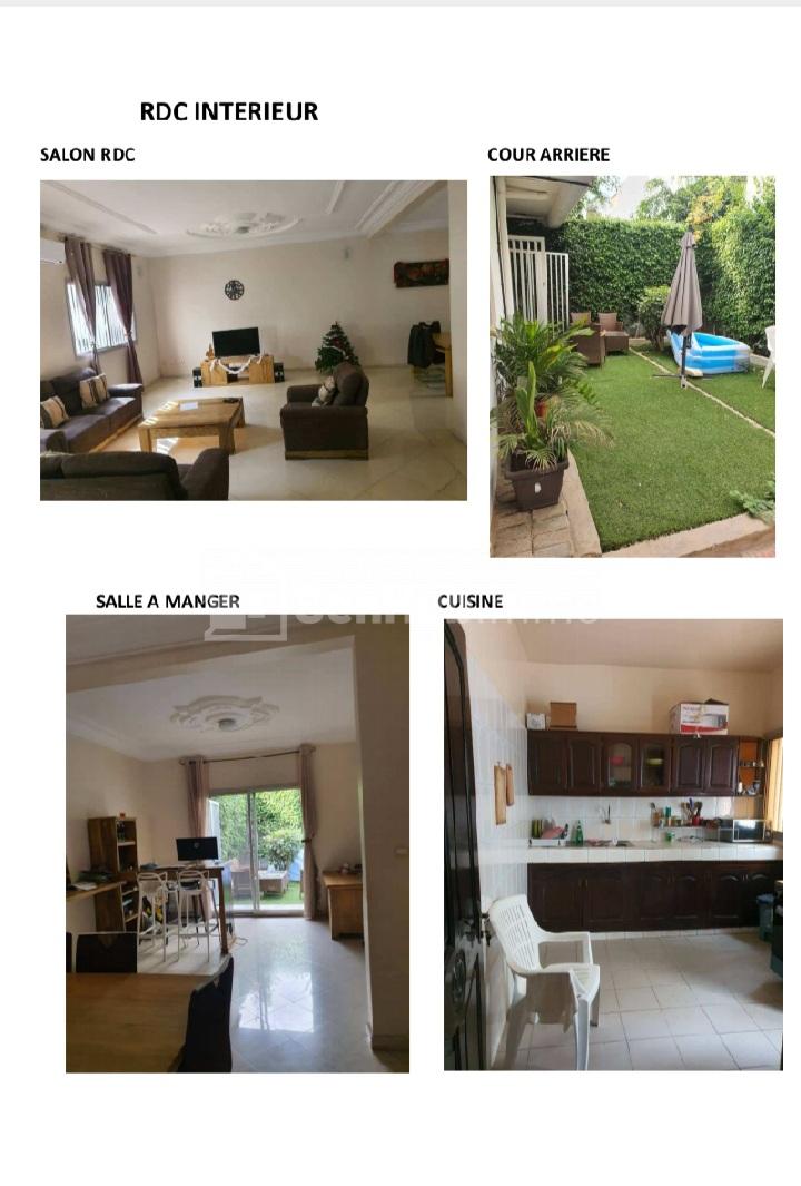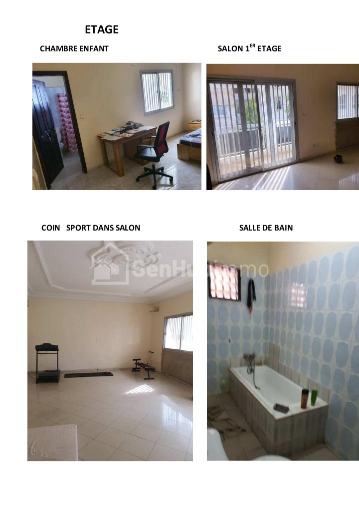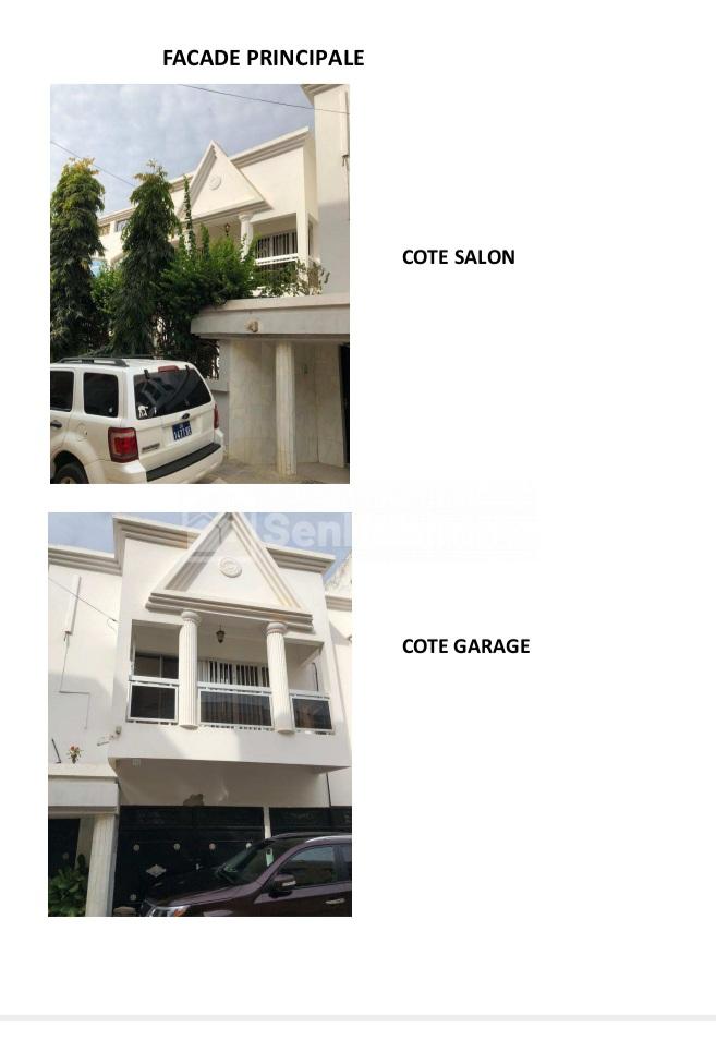 Une villa de 330 m2 R+1 à vendre à Ngor Almadies Façade principale : côté salon , côté garage Rez de chaussée intérieur: Salon, cour arrière, salle à manger, cuisine, Etage: Chambre parent, Chambre enfant, salon, coin sport dans le salon, salle de bain