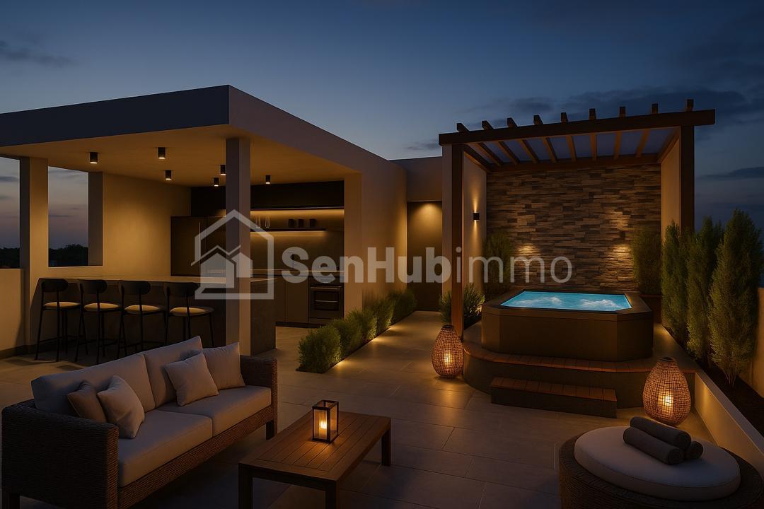 La terrasse en court de finalisation sera accessible aux locataires et leur invités (dans le respect du règlement de vie commune) avec une cuisine un lounge et un espace jaccuzzi.Loyer hors internet, et électricité à la charge du locataire. Provision sur consommation d'eau sera calculé après 3 mois d'habitation.