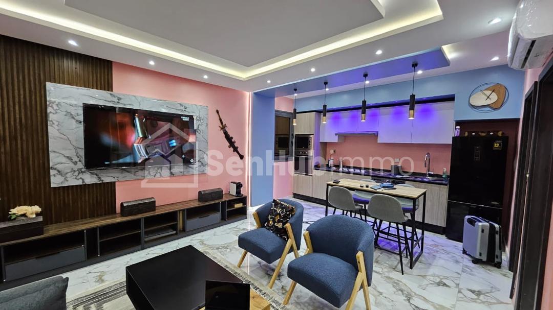 Nous vous proposons ce beau studio entièrement meublé et équipé pour vos cours et long séjour Dakar. Il est situe à Fann Hock à proximité de la corniche situe au 1 er étage. Il est compose d'une entrée , d'un salon, une cuisine ouverte, le tout avec une chambre avec salle de bain Prix hors électricité
